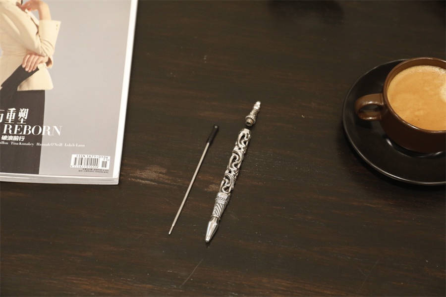 Chrome Hearts CH克罗心925纯银镂空雕花圆珠笔签字笔X043