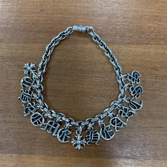 Chrome hearts CH克罗心纯银Paper chain哥特字体英文字母mini小吊坠手链